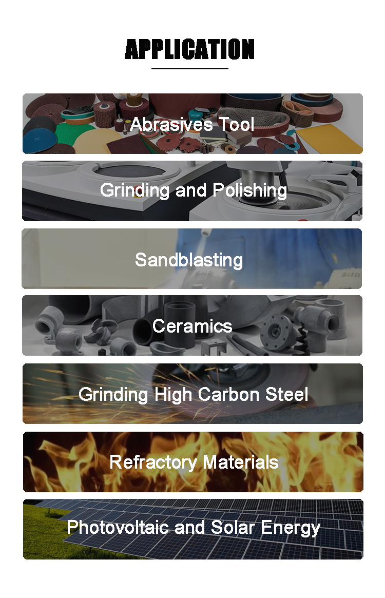 Silicon carbide e sili ona faʻaaogaina ma o se tasi o mea sili ona tamaoaiga. E mafai ona taʻua o le corundum poʻo le oneone faʻafefe. E ma'ale'ale ma ma'ai ei ai le eletise ma le vevela conductivity i nisi degree.The abrasives faia i ai e talafeagai mo le galue i luga o le uʻamea lafo, uʻamea e le-ferrous, papa, paʻu, paʻu, etc.It ua faʻaaogaina lautele foi e pei o mea refractory ma metallurgical faaopoopo.